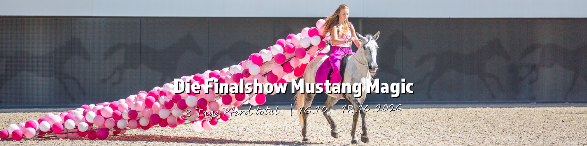 Die Mustang Magic Final Show ist der krönende Abschluss des Mustang Makeover und bringt Mustangs, Trainerinnen und Trainer sowie Pferdefans aus ganz Deutschland zusammen. Dadurch entsteht ein einzigartiges Finale, in dem die besondere Verbindung zwischen Mensch und Mustang noch einmal deutlich wird.
