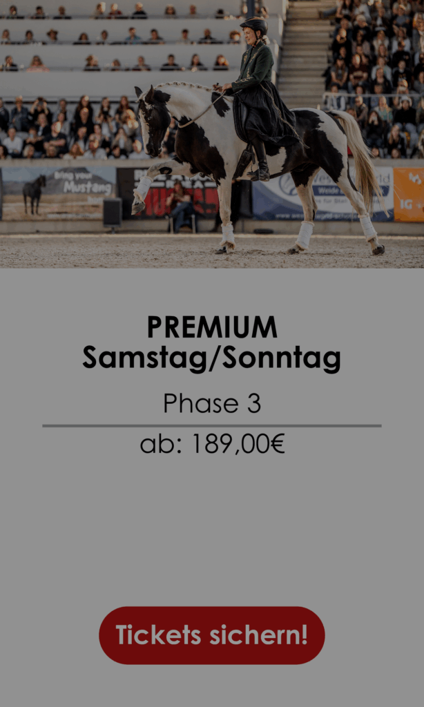 Übrigens: Wir starten den Freitag bereits um 13 Uhr. Der Zutritt ist bis um 18 Uhr für alle Pferdefreunde kostenlos.